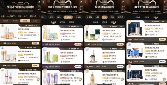 2024年双11期间,溪木源四大王牌系列产品—山茶花水乳、层孔菌水乳、愈创木精华和男士专研系列在大促全档期,稳居天猫各细分类目榜单年度回购榜第一。在抖音更是人气飙升、好评不断,仅是山茶花系列产品就拿下6个类目榜单第一。